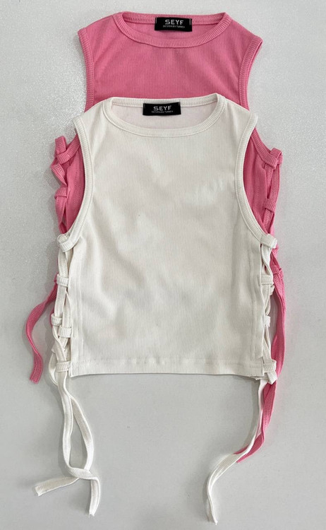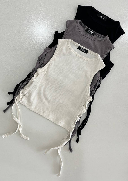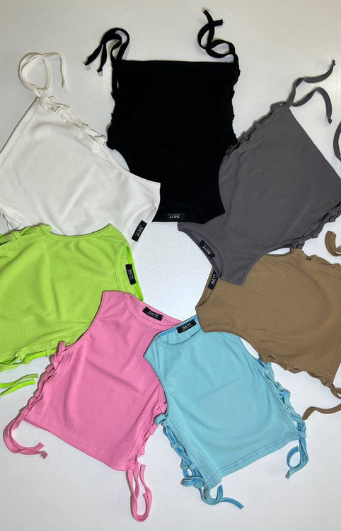 کراپ بغل بندی آستین حلقه ای یقه گرد سوپرپنبه کبریتی