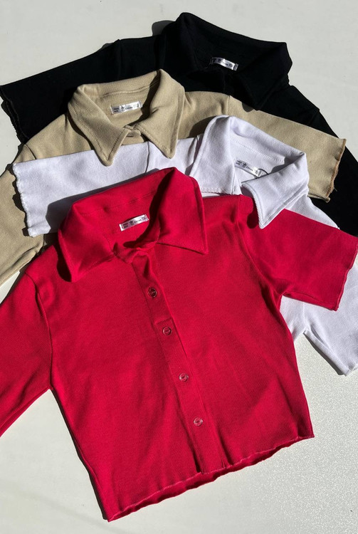 کراپ یقه مردونه دکمه نما نخ پنبه کبریتی آستین تیشرتی