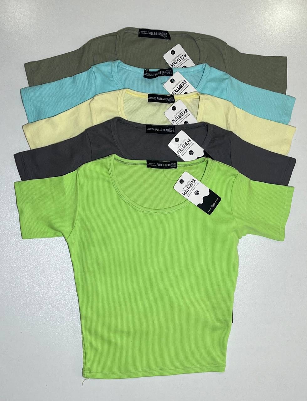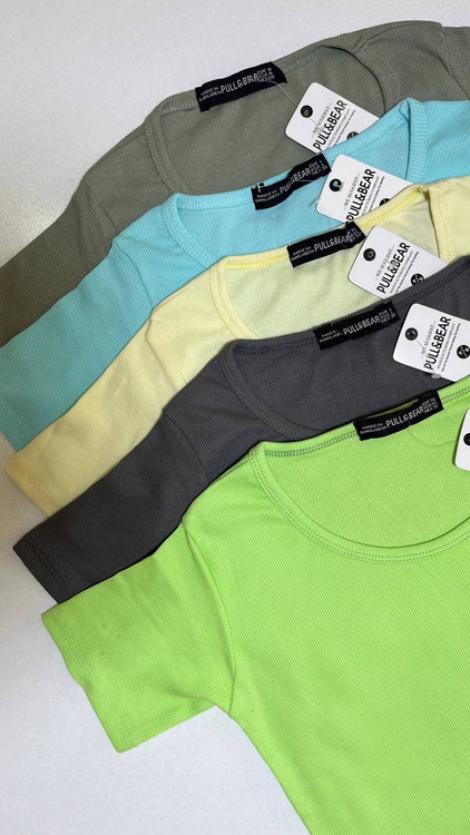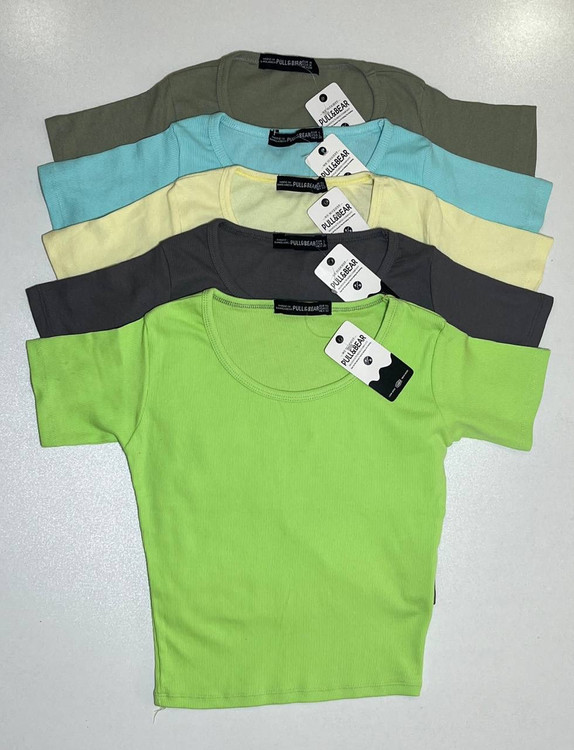 کراپ تیشرتی وارداتی برند Pull & Bearنخ پنبه یقه گرد آستین حلقه ای