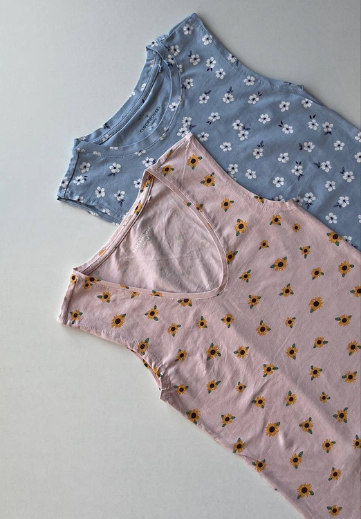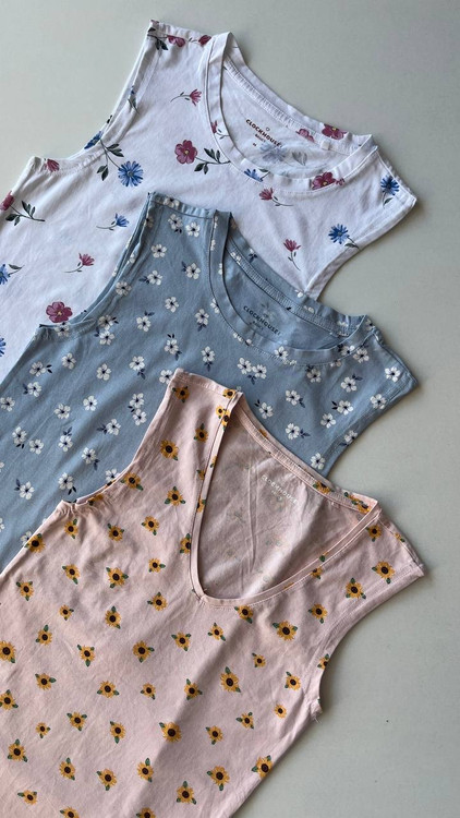 تاپ سوپرپنبه آستین حلقه ای گلدار چاپی وارداتی